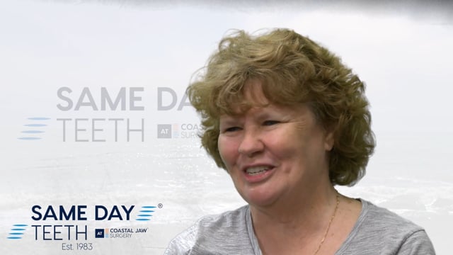 Kathy was in search of help after her teeth started falling out of her mouth one by one. She was afraid to eat or smile in front of people, due to her teeth frequently falling out. She was embarrassed and lacked confidence. Due to bone loss in her jaw, Kathy was limited on options, and after consulting the doctors at Coastal Jaw Surgery she knew Same Day Teeth® dental implants was the correct procedure for her. She says this was one of the best decisions she has ever made and would highly recommend Same Day Teeth® and Coastal Jaw Surgery to anybody in a similar situation.